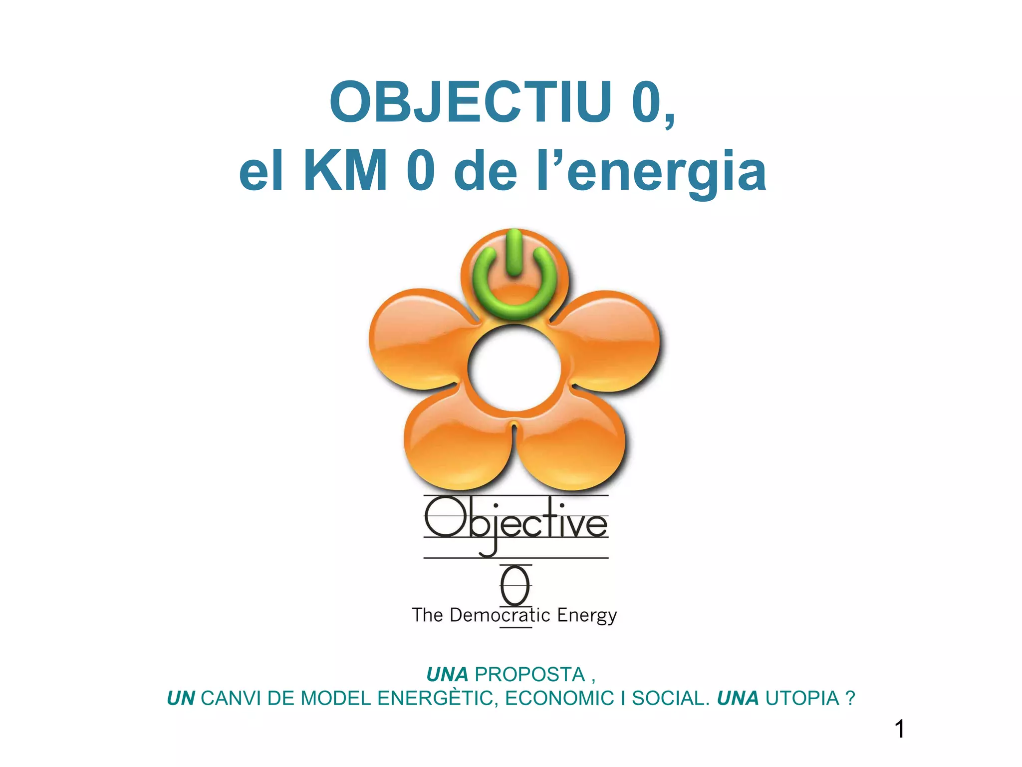 OBJECTIU 0, el KM 0 de l’energia UNA PROPOSTA , UN CANVI DE MODEL ENERGÈTIC, ECONOMIC I SOCIAL. UNA UTOPIA ?