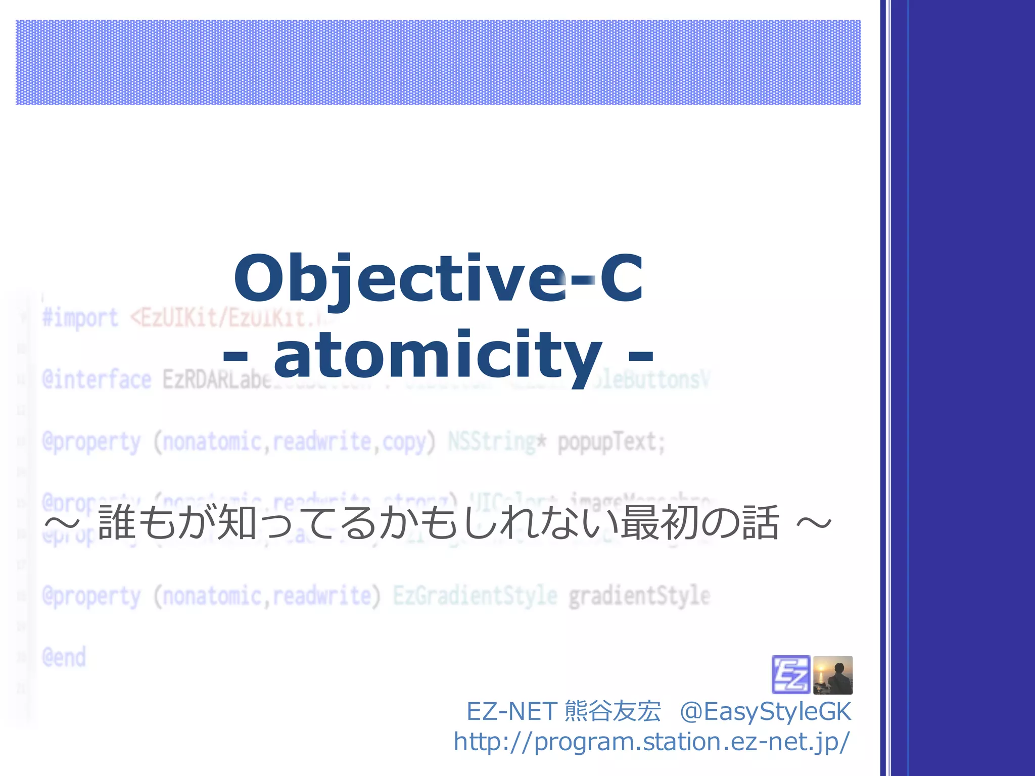 A. atomic と @synthesize を使⽤用する