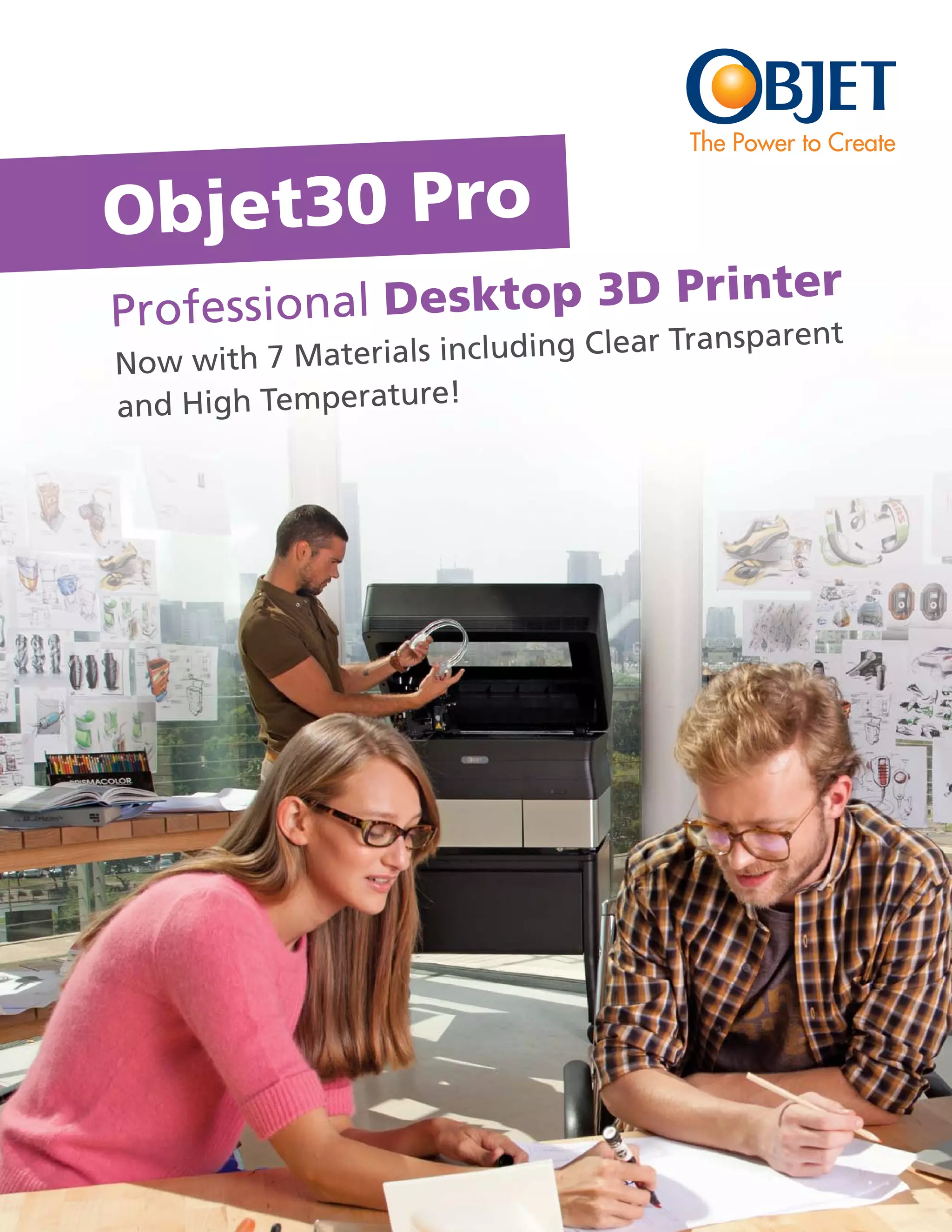 The Objet30 Pro is a desktop 3D printer that combines high-end performance with a small footprint. It provides the highest print resolution and can print with 7 materials, including clear transparent material. This allows it to meet all prototyping needs for industries like consumer goods, electronics, and medical devices. The Objet30 Pro ensures quick product development and delivery through its accuracy and material versatility.