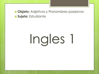 The document is an English lesson that covers possessive adjectives and pronouns. It includes exercises for students to practice identifying and using possessive adjectives and pronouns correctly when describing who an object belongs to. There are sentences for students to complete using the right possessive forms, as well as sentences for students to identify as either correct or incorrect usage of possessives in context.
