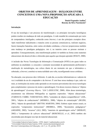 Û¼«½¿9=±ô ª±´ò ëô ²ò ïðô ¶«´ñ¼»¦ îðïð ïîè ÑÞÖÛÌÑÍ ÜÛ ßÐÎÛÒÜׯßÙÛÓ ŠÜ×_ÔÑÙÑÍ ÛÒÌÎÛ ÝÑÒÝÛ×ÌÑÍ Û ËÓß ÒÑÊß ÐÎÑÐÑÍ×Y]Ñ ßÐÔ×ÝßÜß ` ÛÜËÝßY]Ñ Ü¿²·»´ Ú¿¹«²¼»- ß«¼·²±ï α-»³§ ¼¿ Í·´ª¿ Ò¿-½·³»²¬±î ײ¬®±¼«9=± Ñ «-± ¼¿ ¬»½²±´±¹·¿ 7 «³ °®±½»--± ¼» ¬®¿²-º±®³¿9=± » ¿- °®·²½·°¿·- ·²±ª¿9+»- ¬»½²±´-¹·½¿- °±¼»³ ®»-«´¬¿® »³ ³«¼¿²9¿- ¼» ¬±¼± «³ °¿®¿¼·¹³¿ò ß ®»¼» ³«²¼·¿´ ¼» ½±³«²·½¿9=± °±® ³»·± ¼» ½±³°«¬¿¼±®»- ·²¬»®´·¹¿¼±-ô ½±²¸»½·¼¿ ½±³± ײ¬»®²»¬ô 7 «³ ¼±- °®·²½·°¿·- »¨»³°´±- ¼·--±ò ß°-- ¬®¿²-º±®³¿® ®¿¼·½¿´³»²¬» ¿ ³¿²»·®¿ ½±³± ¿- °»--±¿- ½±³«²·½¿³ó-»ô ®»¿´·¦¿³ ²»¹-½·±-ô º¿¦»³ ¬®¿²-¿9+»- ¾¿²½?®·¿-ô »²¬®» ±«¬®¿- ¿¬·ª·¼¿¼»- ½±¬·¼·¿²¿-ô ¿ ײ¬»®²»¬ °®±°±®½·±²±« ¬¿³¾7³ «³¿ ³«¼¿²9¿ ²± °¿®¿¼·¹³¿ °»¼¿¹-¹·½±ô ·-¬± 7ô ²¿ ³¿²»·®¿ ½±³± ¿- °»--±¿- »²-·²¿³ » ¿°®»²¼»³ò ݱ²-»¯«»²¬»³»²¬»ô «³¿ ¬®¿²-º±®³¿9=± °±¼»®? ª·® ¬¿³¾7³ ²¿ º±®³¿ ½±³± ³¿¬»®·¿·- »¼«½¿½·±²¿·- -=± ¼»-»²ª±´ª·¼±- » ±º»®»½·¼±- °¿®¿ ¿¯«»´»- ¯«» ¼»-»¶¿³ ¿°®»²¼»® øÉ×ÔÛÇô îððð÷ò ß ·²½´«-=± ¼¿- Ò±ª¿- Ì»½²±´±¹·¿- ¼¿ ײº±®³¿9=± » ݱ³«²·½¿9=± øÒÌ×Ý-÷ »³ ¯«¿-» ¬±¼±- ±- ¿³¾·»²¬»- ²¿ ¿¬«¿´·¼¿¼» » ¿ ½®»-½»²¬» » ½±²-¬¿²¬» ²»½»--·¼¿¼» ¼» ¿°®·³±®¿³»²¬± °®±º·--·±²¿´ » ¿¬«¿´·¦¿9=± ¼» ³»¬±¼±´±¹·¿-ô ²±- ½±´±½¿ ¼·¿²¬» ¼» «³ ³±³»²¬± »³ ¯«» ¿ ·²º±®³?¬·½¿ »ô -±¾®»¬«¼±ô ¿ ײ¬»®²»¬ô ½±²-¬·¬«·ó-» ²«³¿ ®»¿´·¼¿¼» -»³ ª±´¬¿ô ®»½±²º·¹«®¿²¼± ²±--± ½±¬·¼·¿²±ò Ò¿ »¼«½¿9=±ô »--» °®±½»--± ²=± 7 ¼·º»®»²¬»ò ß ½¿¼¿ ¼·¿ô ¿- »-½±´¿- ·²º±®³¿¬·¦¿³ó-» » ¿¼»®»³ ¼» ª»¦ @ ®»¿´·¼¿¼» ¼¿ »®¿ ¼± ½±³°«¬¿¼±® » ¼¿ ײ¬»®²»¬ò W ½±³ ¾¿-» ²»--¿ ³«¼¿²9¿ 7 ¯«»ô ½¿¼¿ ª»¦ ³¿·-ô ¿- ·²-¬·¬«·9+»- ¼» »²-·²± »-¬=± ¿°±·¿²¼±ó-» »³ ®»½«®-±- °®±ª»²·»²¬»- ¼¿- ²±ª¿- ¬»½²±´±¹·¿- °¿®¿ ½±³°´»³»²¬¿® ± °®±½»--± ¼» »²-·²± » ¿°®»²¼·¦¿¹»³ò ˳ ¼»--»- ®»½«®-±- ½¸¿³¿ó-» •±¾¶»¬±- ¼» ¿°®»²¼·¦¿¹»³ŒøÔ»¿®²·²¹ Ѿ¶»½¬ô ÔÑŒ÷ ø×ÛÛÛñÔÌÍÝô îððð÷ò ß´7³ ¼»--¿ ¬»®³·²±´±¹·¿ô »²½±²¬®¿³± ²¿ ¼·º»®»²¬» ¾·¾´·±¹®¿º·¿ ¿ »¹«·²¬» »¨°®»+»æ ±¾¶»¬± »¼«½¿½·±²¿·Œ øÌßÎÑËÝÑå ÚßÞÎÛå ÌßÓËÍ×ËÒßÍô îððí÷ô ½±²¬»&¼± ¼» ±¾¶»¬± ½±³°¿®¬·´¸?ª»·ŒøßÜÔô îððï÷ô ±¾¶»¬± ¼» ½±²¸»½·³»²¬±ŒøÓÛÎÎ×ÔÔô îððð÷ô ±¾¶»¬± ¼» ½±³«²·½¿9=±ŒøÓËÆ×Ñô îððï÷ô ±¾¶»¬± ¼» ¿°®»²¼·¦¿¼±ŒøÞÛÌÌ×Ñå ÓßÎÌ×ÒÍô îððì÷ò Û³¾±®¿ »¶¿³ ³»²± ««¿·ô ¿ »¨°®»+» ½±³°±²»²¬» ·²¬®«½·±²¿·ŒøÓÛÎÎ×ÔÔô îððð÷ô ¼±½«³»²¬± °»¼¿¹-¹·½±Œ øßÎ×ßÜÒÛô îððî÷ô ®»½«®±ŒøßÔ×ô îððî÷ô ³¿¬»®·¿· ¼» ¿°®»²¼·¦¿¹»³ ±²´·²»ŒøÓÛÎÔÑÌô îððî÷ » •½±³°±²»²¬»- ¼» -±º¬©¿®» »¼«½¿½·±²¿´ŒøÎÑÍÝØÛÔÔÛô »¬ ¿´òô îððí÷ ¬¿³¾7³ -=± »²½±²¬®¿¼¿- °¿®¿ ¼»-·¹²¿® »--» ¬·°± ¼» ³¿¬»®·¿´ »¼«½¿½·±²¿´ò ï ˲·ª»®·¼¿¼» Ú»¼»®¿´ ¼» Í¿²¬¿ Ý¿¬¿®·²¿ ŠËÚÍÝô ¼¿²·»´ÁºÁ¿«¼·²±à§¿¸±±ò½±³ò¾® î ˲·ª»®-·¼¿¼» Ú»¼»®¿´ ¼» Í¿²¬¿ Ý¿¬¿®·²¿ó ËÚÍÝô ®±-»³§ò²¿-½·³»²¬±à¹³¿·´ò½±³