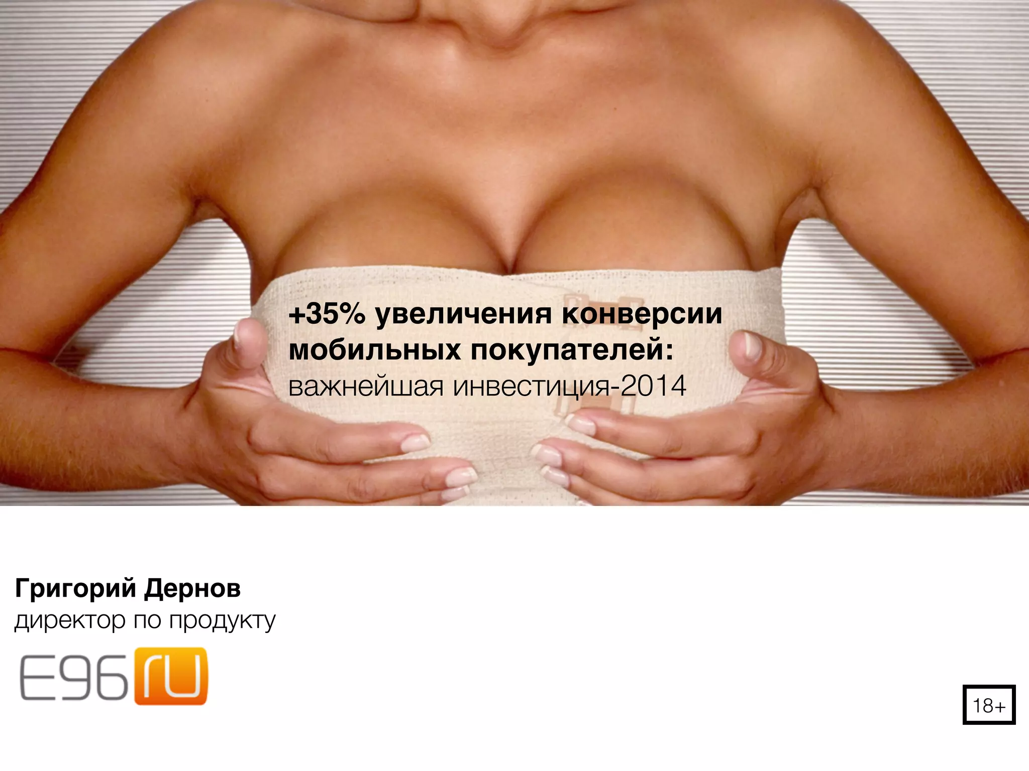 Документ обсуждает увеличение конверсии мобильных покупателей на 35% в 2014 году, акцентируя внимание на важности мобильной версии сайта для e96. Он подчеркивает высокий потенциал мобильного трафика и необходимость улучшения пользовательского опыта, несмотря на низкие показатели конверсии мобильных пользователей по сравнению с десктопными. Автор предлагает оптимизировать мобильную версию и приложение, учитывая поведенческие модели пользователей и каналы трафика для достижения максимальных результатов.