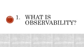 The document discusses observability in cloud-native applications, emphasizing its distinctiveness from traditional monitoring by aiming to provide an understanding of a system's internal states. It covers various methods including monitoring, logging, metrics collection, tracing, visualization, and alerting, detailing how each contributes to system analysis and problem detection. Additionally, it introduces open-source tools and best practices for implementing observability effectively within distributed systems.