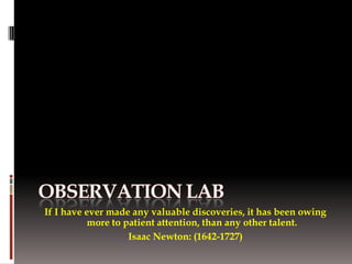 The document describes observations from a visit to a store, noting details about the store's layout, clean and spacious environment, visible security, engaged sales associates, well-organized product placement, and typical customer demographics and behaviors including an average visit time of 30 minutes.
