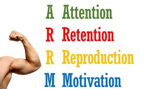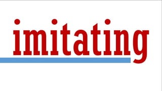 The document discusses various concepts related to learning and imitation, including instinctive behaviors, observational learning, and the impact of modeling on behavior. It emphasizes the role of self-efficacy in predicting the ability to deal with fear and how both children and animals imitate behaviors from their environments. The content references Bandura's theories of behaviorism and the significance of role models in shaping actions and gender roles.