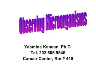 This document provides an overview of different types of microscopes used to observe microorganisms and describes various staining techniques. It discusses light microscopes like compound, darkfield, phase contrast, and fluorescence microscopes. Electron microscopes like transmission and scanning electron microscopes are also outlined. Different staining methods such as simple, differential, and special stains are summarized, with examples like Gram staining and acid-fast staining.