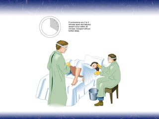 The document discusses topics related to obstetrics including the prenatal period, assessment and management of obstetric patients, complications during pregnancy and delivery, abnormal delivery situations, and maternal complications of labor and delivery. It provides details on the anatomy, physiology, development, and common issues that can arise at each stage of pregnancy, labor, delivery, and the postpartum period. Management guidelines are presented for emergency situations that may be encountered with obstetric patients in the prehospital setting.