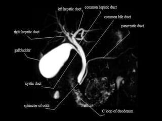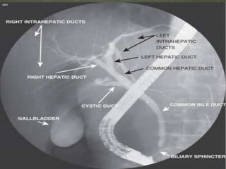 The document discusses jaundice, its types, causes, symptoms, and diagnostic methods, highlighting the importance of identifying the underlying issues. It provides detailed insights into the management and treatment of biliary conditions, including various diagnostic procedures and interventions. Additionally, it outlines the relationship between jaundice and conditions like gallbladder disease, emphasizing the need for timely treatment to prevent complications.