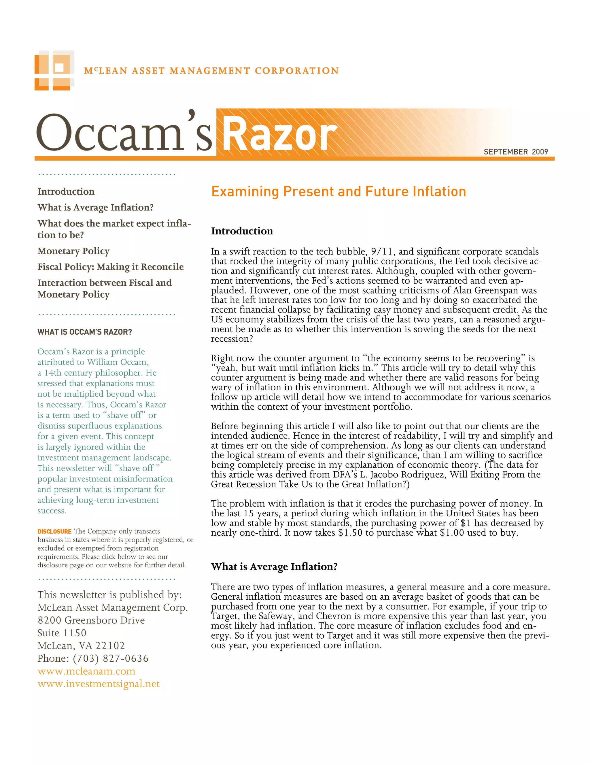 This document discusses inflation and monetary policy. It begins by defining average inflation over the last 50 years as around 4% according to the Consumer Price Index. It then notes that the market currently expects future inflation to be around 2%, in line with the Federal Reserve's target. However, it expresses concern that monetary policy interventions in response to the financial crisis, which dramatically increased the monetary base, could sow the seeds for higher inflation in the future if banks begin lending out excess reserves more aggressively. Fiscal policy interactions with monetary policy are also flagged as a potential issue to monitor regarding inflation.