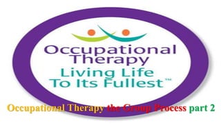 This document outlines the seven steps of the group intervention process used in occupational therapy: introduction, activity, sharing, processing, generalizing, application, and summary. The introduction step involves welcoming group members, setting expectations, and outlining goals. The activity step requires selecting a therapeutic activity matched to members' capacities. Sharing and processing involve discussing members' experiences. Generalizing identifies lessons learned. Application relates lessons to real life. The summary reviews key points and acknowledges participation. Additional factors for effective group leadership include motivation, role modeling, communication skills, limit setting, and personal qualities like courage and willingness.