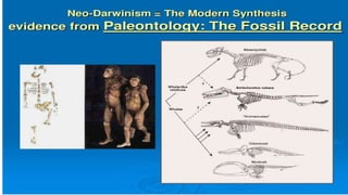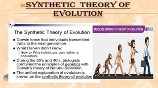 3. It examines various evolutionary patterns such as natural selection, genetic drift, speciation, punctuated equilibrium, microevolution, coevolution, convergent evolution, and adaptive radiation.