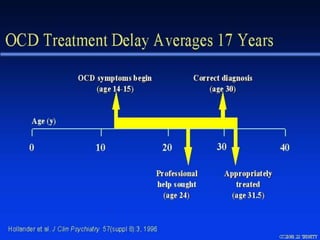Obsessive Compulsive Disorder (OCD) is an anxiety disorder characterized by recurrent, unwanted thoughts (obsessions) and repetitive behaviors or mental acts (compulsions) performed in response to these thoughts. The obsessions or compulsions significantly interfere with daily life. OCD has been linked to imbalances in neurotransmitters like serotonin and dopamine in the brain, as well as genetic and environmental factors. Treatment involves psychotherapy like cognitive behavioral therapy and medication like selective serotonin reuptake inhibitors. Other potential treatments under research include repetitive transcranial magnetic stimulation and electroconvulsive therapy, but more studies are still needed to establish their efficacy for OCD.