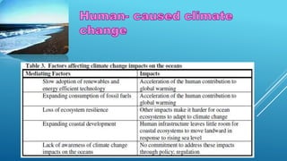 3) The ocean cycles gases by absorbing large amounts of carbon dioxide from the atmosphere.