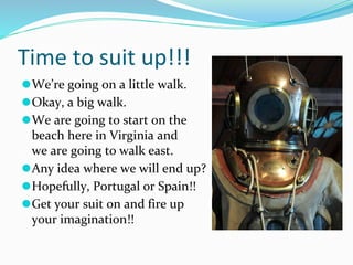 The continental shelf is the shallowest part of the ocean floor, extending on average 45 miles from continents at a depth of around 450 feet. At the edge of the continental shelf is the steep continental slope that plunges downward toward the deep ocean bottom. Between the slope and the deep ocean floor is the continental rise, made of sediment deposited there by ocean currents. The deep ocean floor, also called the abyss, averages between 2.5 to 3.5 miles deep and covers 30% of the Earth's surface, containing features like those found on land such as canyons, mountains, and plains.