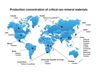 Deep ocean mining targets volcanogenic massive sulfide (VMS) ore deposits on the seafloor that contain valuable metals like copper, zinc, gold and silver. These deposits form from hydrothermal vents where superheated water and dissolved metals erupt from underwater volcanoes. While explored in the 1970s, the technology was not advanced enough to mine economically. However, with rising demand and limited new sources of critical metals, companies are again looking to mine these deep ocean deposits using new mining machines and ship-based processing. One project, Solwara 1 off Papua New Guinea, aims to extract over a million tons per year of high-grade copper and gold starting in 2013 at a depth of 1,600
