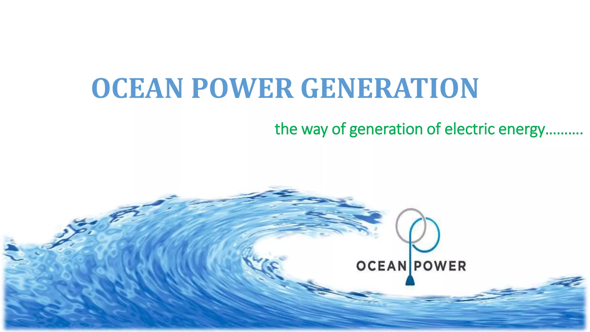 The document discusses ocean power generation as a form of renewable energy derived from ocean waves, tides, and temperature differences. It details different types of non-conventional energy sources, specifically focusing on tidal and wave energy generation methods, as well as ocean thermal energy conversion. Additionally, it outlines the advantages and disadvantages of tidal energy and emphasizes its potential for predictable and sustainable power generation.