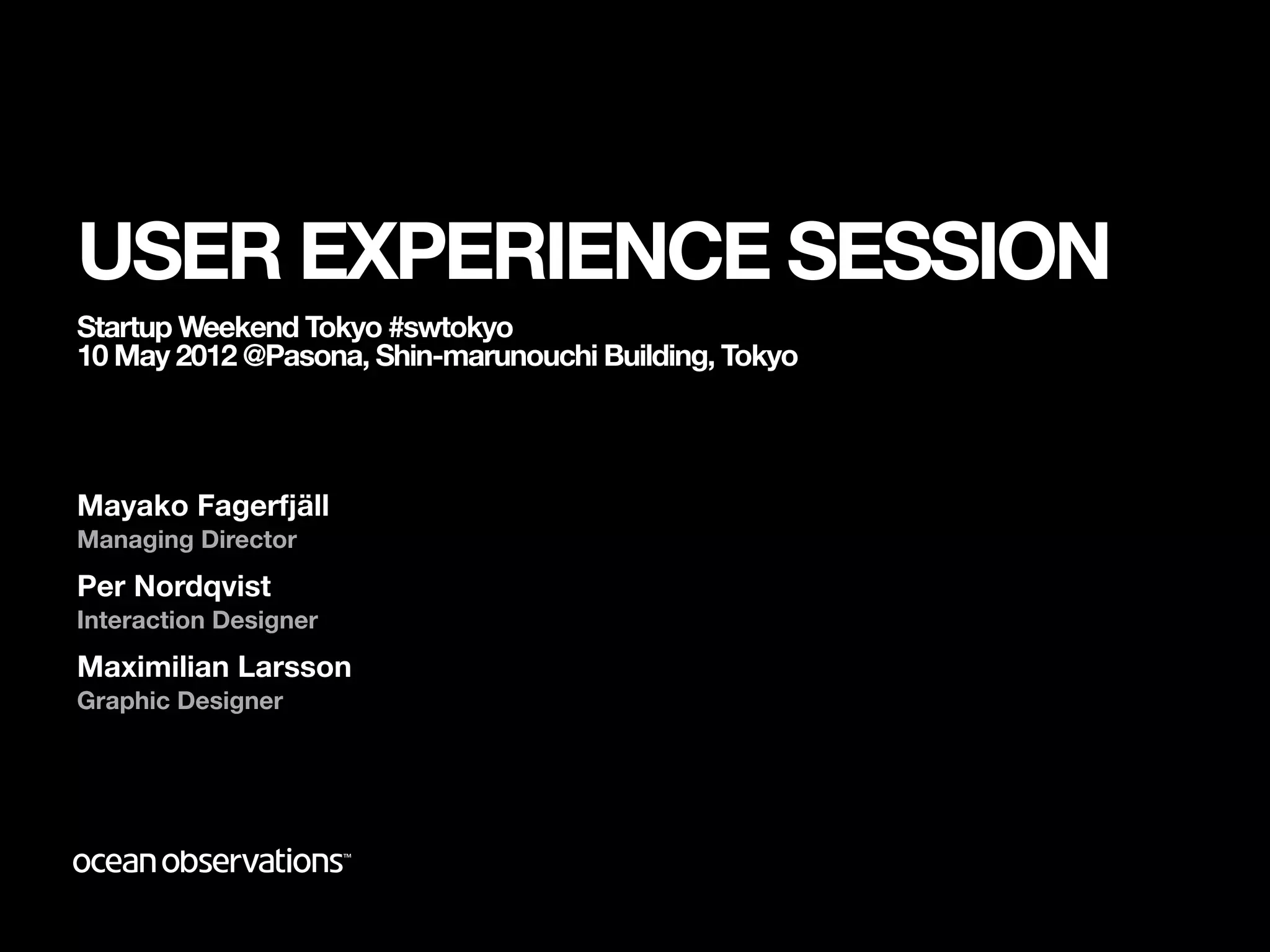 The document outlines an Ocean Observations user experience session on designing for a startup weekend, including introductions of the presenters, an overview of Ocean Observations and its process for UX design. The session covers principles of user experience design like structure, simplicity and feedback and provides a graphic design crash course covering topics like wireframes, inspiration, iteration and delivering on time.
