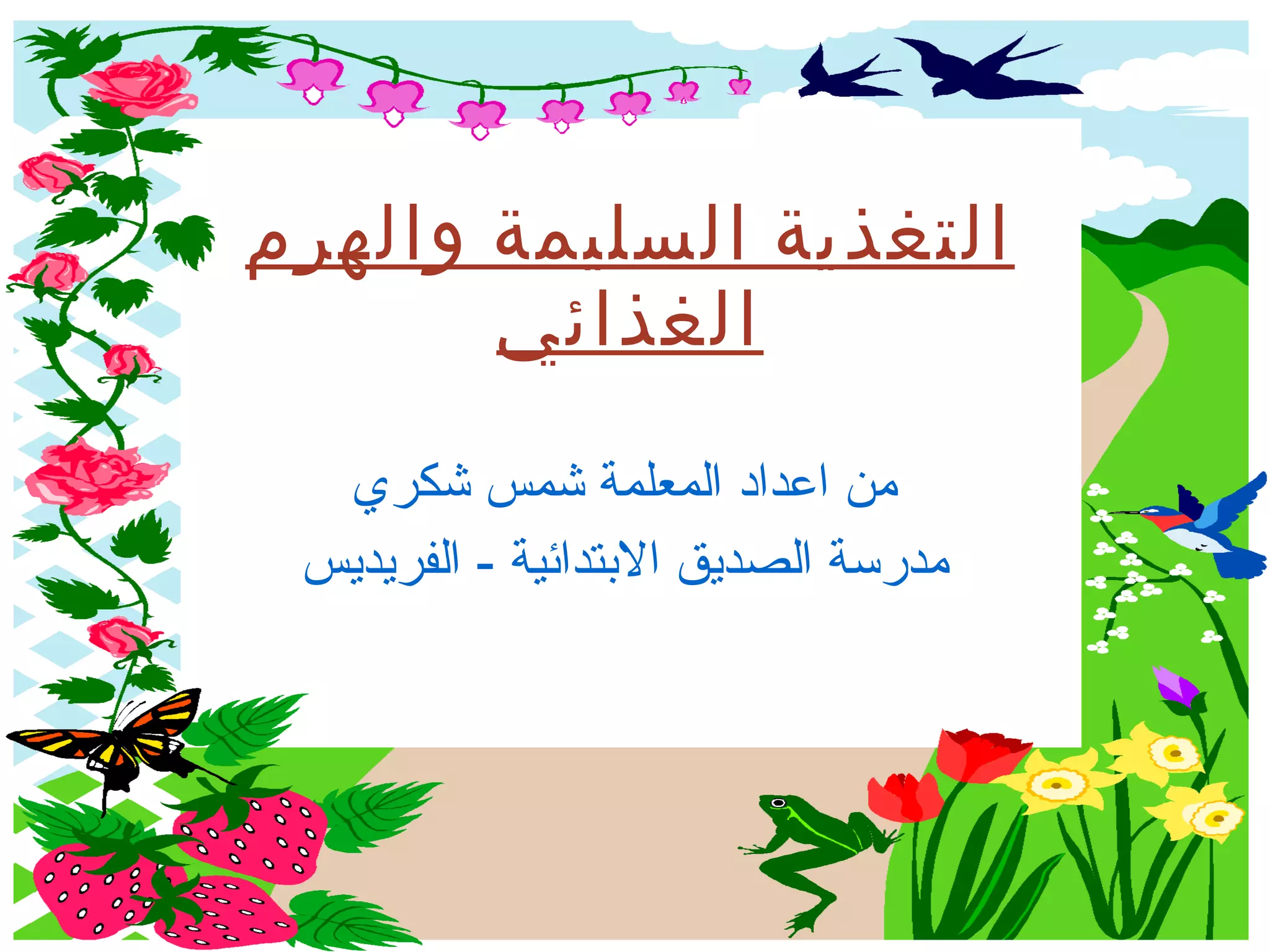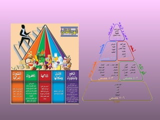 تتناول الوثيقة أهمية التغذية السليمة والهرم الغذائي كأداة لتوجيه النظام الغذائي الصحي للفرد، مع توضيح المجموعات الغذائية الرئيسية حسب احتياج الجسم. كما تناقش الوثيقة التحديثات الجديدة في الهرم الغذائي وتبرز المخاطر الصحية المرتبطة بتناول الوجبات السريعة. تهدف الوثيقة إلى تشجيع نظام غذائي متوازن للمحافظة على الصحة الجيدة.