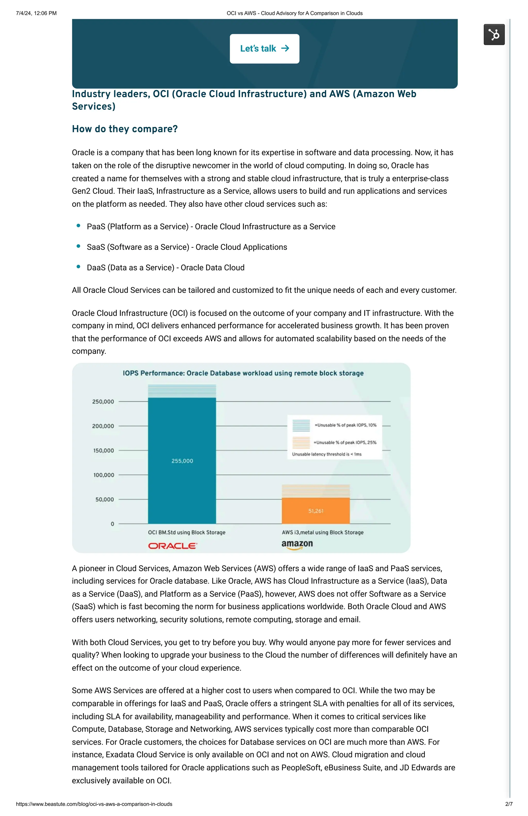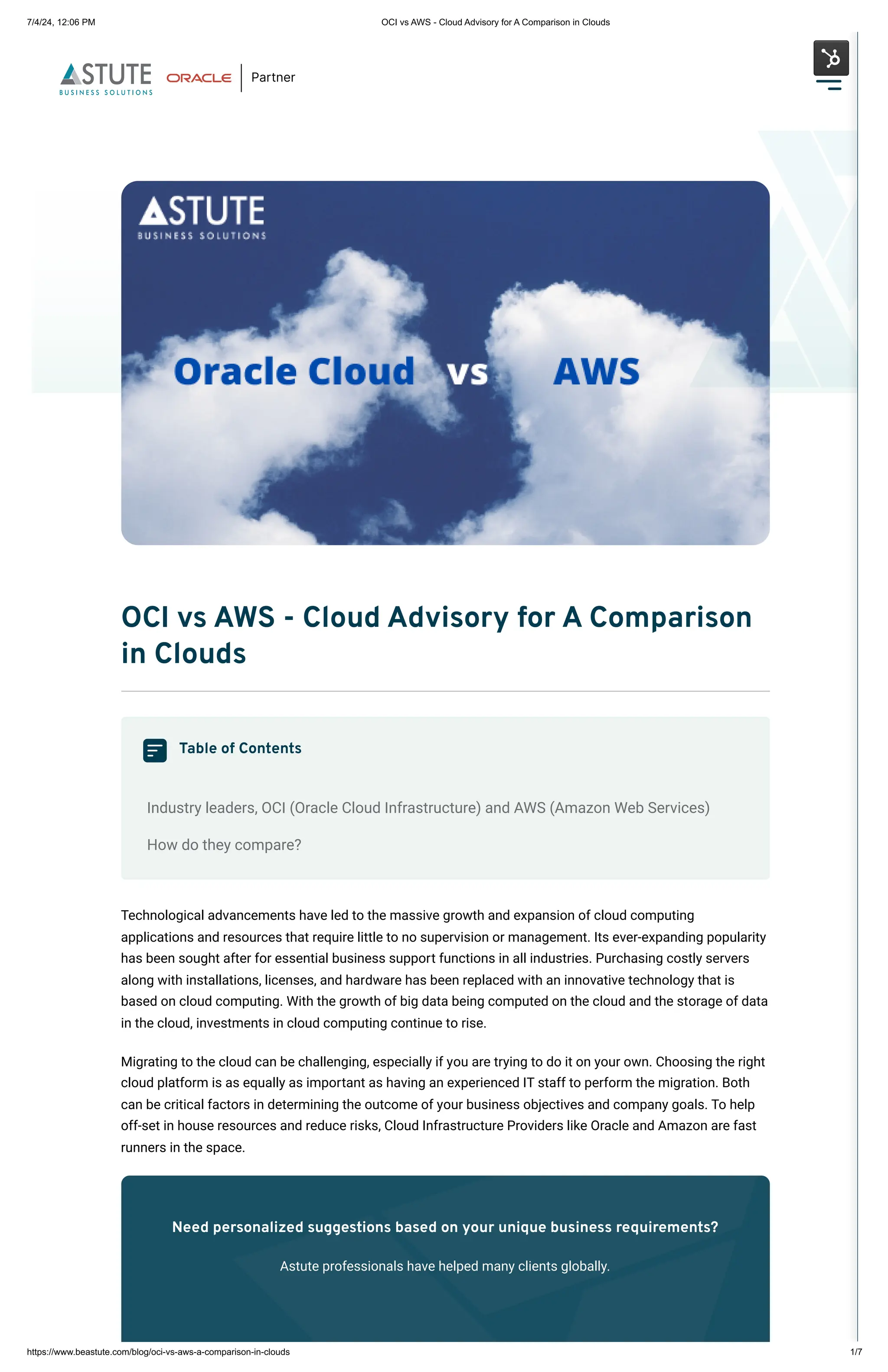 Oracle Cloud Infrastructure versus AWS. How do they compare? - Cloud Advisory for A Comparison in Clouds.