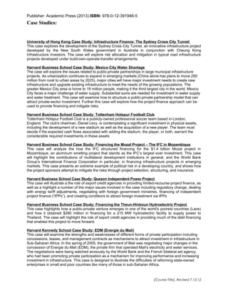 This course provides a comprehensive examination of project finance techniques and case studies. Students will analyze 12 case studies in teams and individually that illustrate how project finance is used to fund infrastructure and other capital-intensive projects globally. Topics include the perspectives of lenders and investors, political and commercial risk mitigation, and the role of multilateral development banks and Islamic finance. Students will be evaluated based on a team case presentation, three individual written case analyses, and a final exam focusing on course concepts and readings.