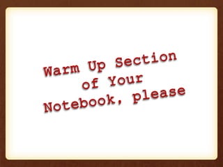 - Warm-up with Khan Academy on fractions and percents