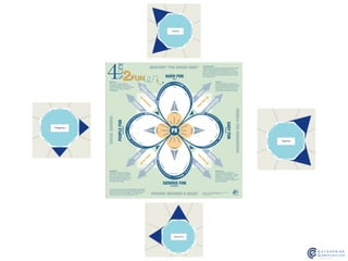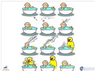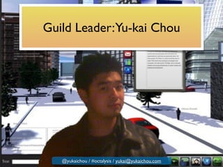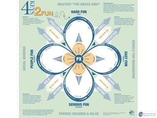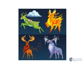 The document discusses gamification and the Octalysis framework for designing gamified systems. It introduces the 8 core drives that should be used to design gamification (meaning, accomplishment, empowerment, ownership, social influence, scarcity, unpredictability, avoidance) rather than just adding game elements. It also discusses white hat versus black hat gamification and provides examples of game mechanics that can satisfy each of the 8 core drives.