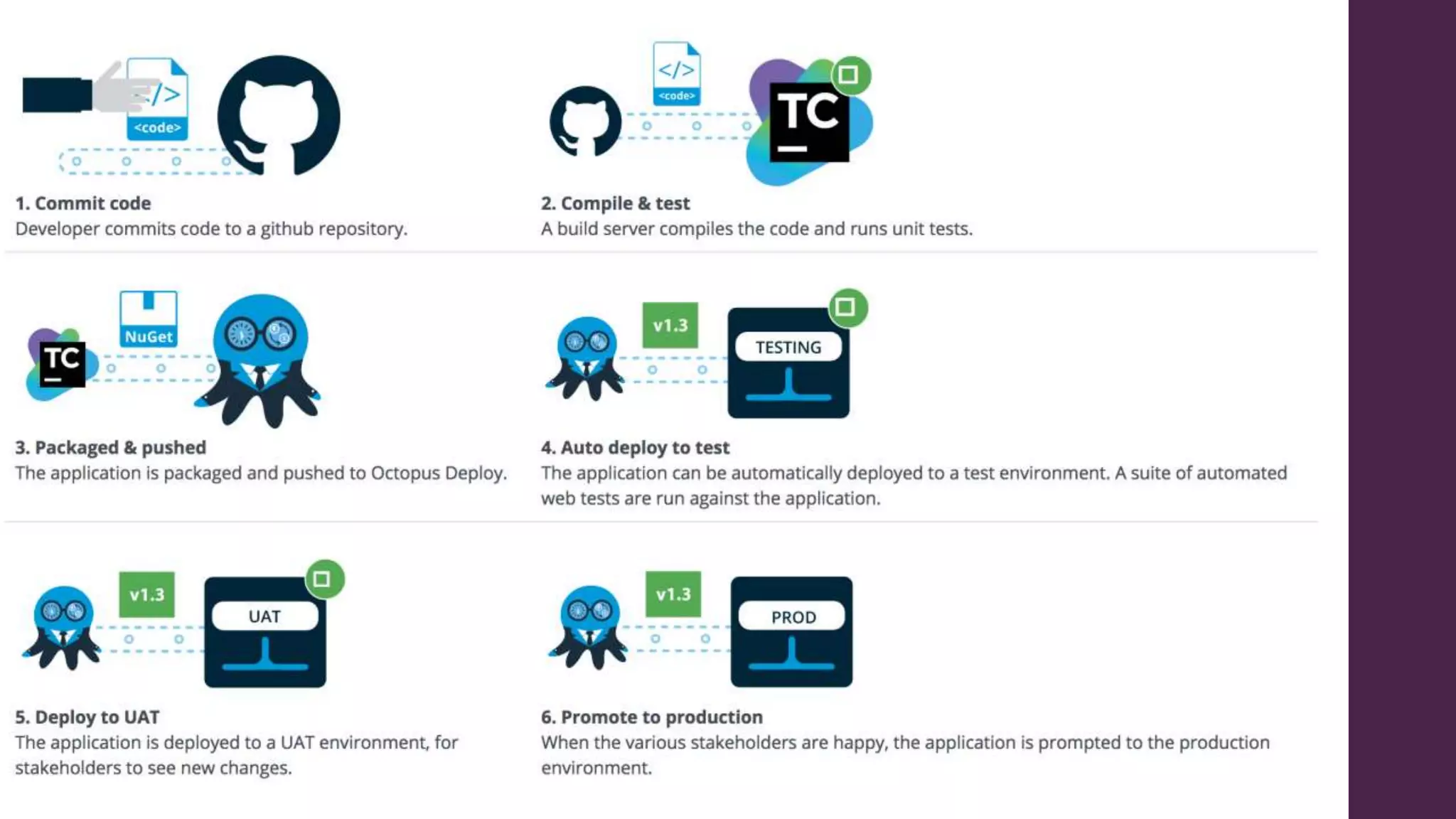 The document outlines the features and advantages of using Octopus Deploy, particularly in the context of deploying .NET applications. Key components such as environments, tentacles, packages, projects, and deployment lifecycles are discussed, along with the flexibility and support offered to users. It emphasizes Octopus Deploy's ease of use, powerful capabilities, and responsive customer support, making it suitable for both simple and complex deployment scenarios.