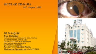 This document discusses various types of ocular trauma, including: