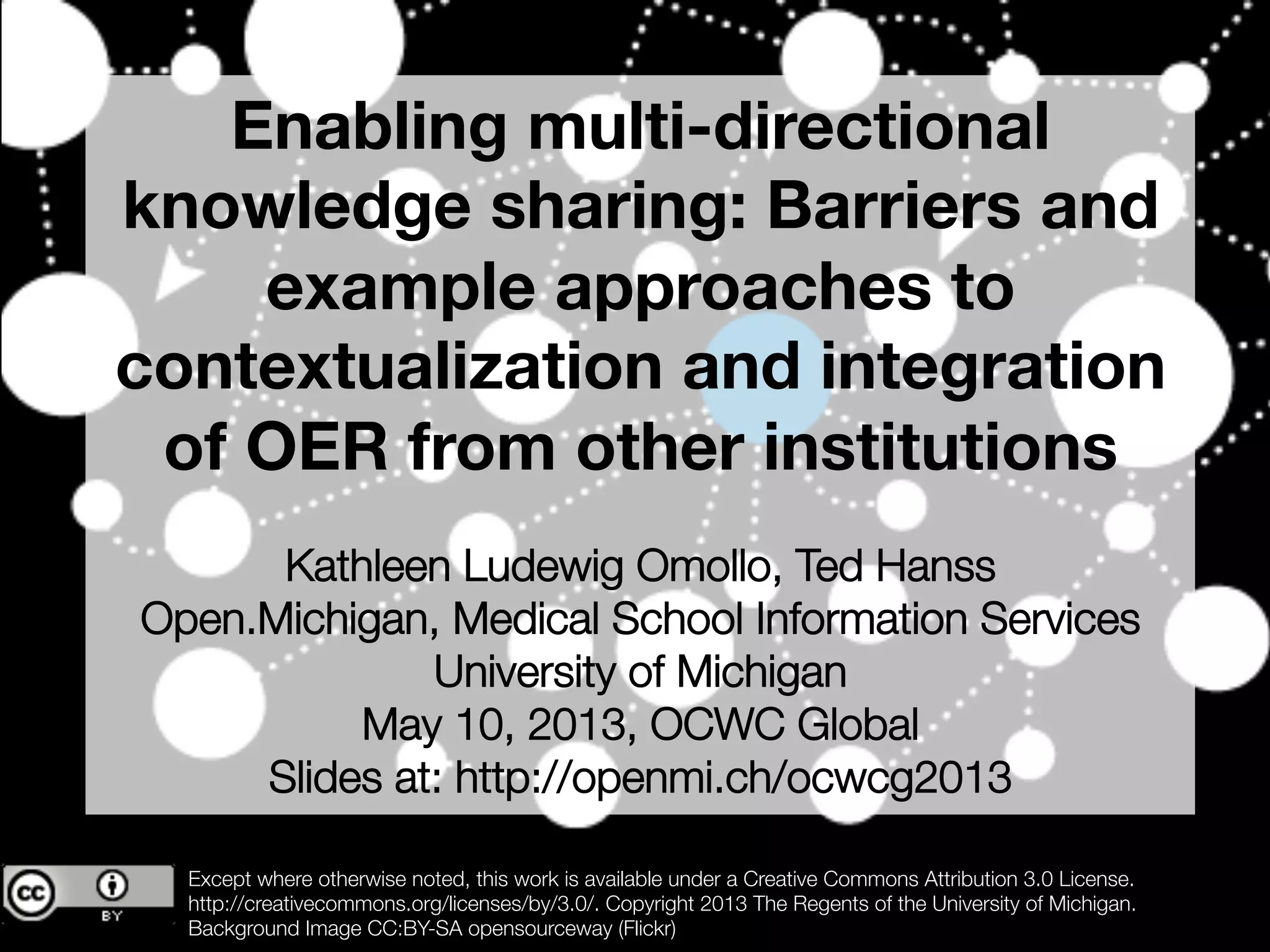The document discusses the challenges and strategies for sharing open educational resources (OER) in health education, particularly within African institutions. Key barriers include limited internet access, differing educational contexts, and lack of local support, while approaches such as leveraging local expertise and crowdsourcing translations have shown promise. Outcomes from these efforts include increased awareness, higher access to learning materials, and evidence of improved teaching and learning quality.