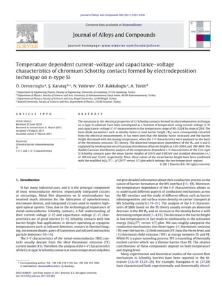 The document summarizes a study that investigated the temperature dependent current-voltage (I-V) and capacitance-voltage (C-V) characteristics of chromium Schottky contacts formed on n-type silicon substrates by electrodeposition from 80-320K. The diode parameters such as ideality factor and barrier height were extracted from I-V measurements and showed an abnormal decrease in barrier height and increase in ideality factor with decreasing temperature. This was explained by a double Gaussian distribution of barrier heights over two temperature regions. Analysis of the I-V characteristics confirmed mean barrier heights of 0.910eV and 0.693eV for the two regions.