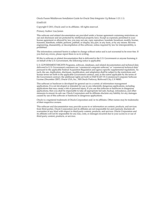 This document provides an overview of installing Oracle Data Integrator (ODI), including its main applications like ODI Studio, repositories, and standalone agent, as well as different installation types; it outlines the installation roadmap and process flow, and summarizes ODI's topology with the components that can be installed and their purposes.