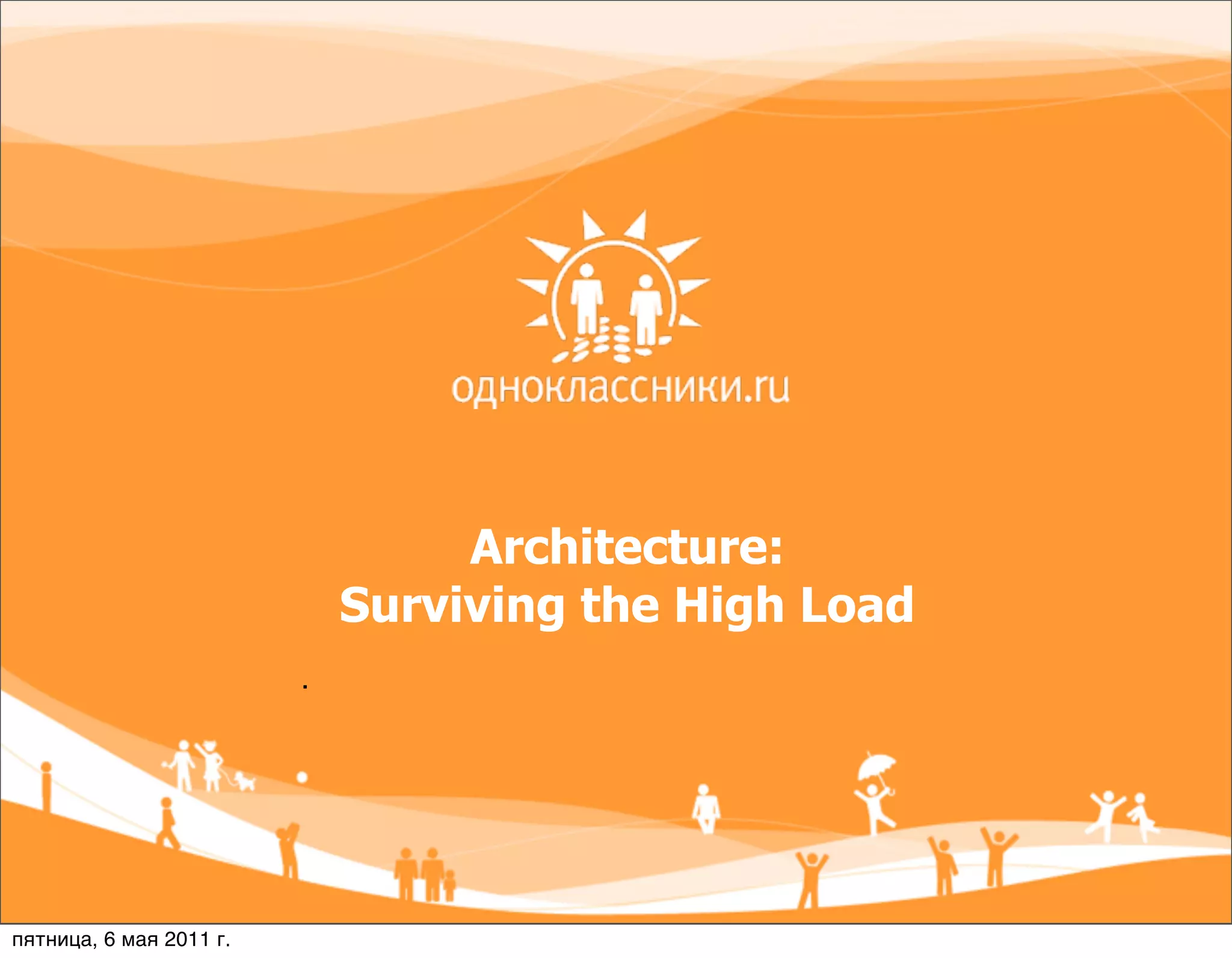 This document summarizes the architecture of a social networking platform handling high loads of 2.8 million users. It discusses how the load is balanced across 3 data centers with 2400 servers. It describes the multi-layer architecture including web servers, application servers, business services, caches, and SQL and NoSQL databases. It also discusses strategies for ensuring high performance and reliability under heavy loads, including handling garbage collection pauses, database partitioning, and using gatekeepers to control new features.