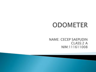 An odometer is a device that measures distance traveled by a vehicle. It can be electronic, mechanical, or a combination. The word comes from Greek words meaning "path" and "measure". In some countries it is also called a milometer.