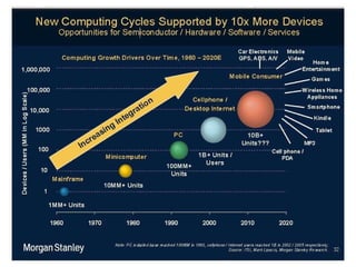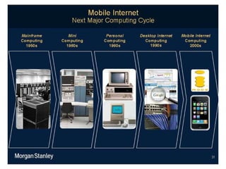 The document discusses the transformation brought about by mobile learning (mLearning) in various contexts, emphasizing its accessibility and potential for facilitating both formal and informal learning globally. It provides examples of successful mobile projects in telemedicine, research, and healthcare training, highlighting the importance of understanding user needs and technical conditions. The author advocates for careful planning, stakeholder involvement, and the use of user-generated content to enhance learning experiences through mobile technology.