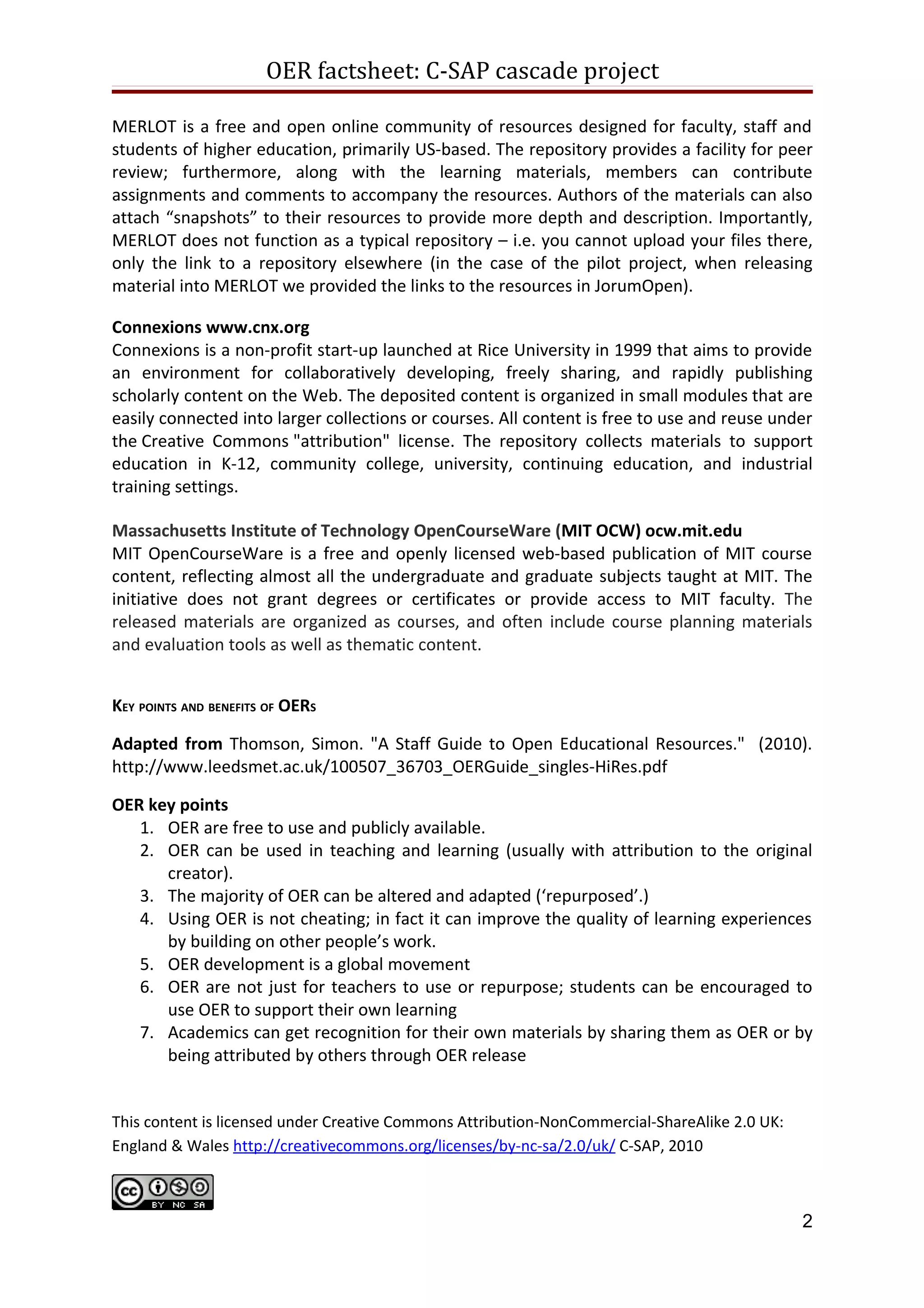 2. Key OER initiatives from around the world like Jorum, OpenLearn, MERLOT, Connexions, and MIT OpenCourseWare.