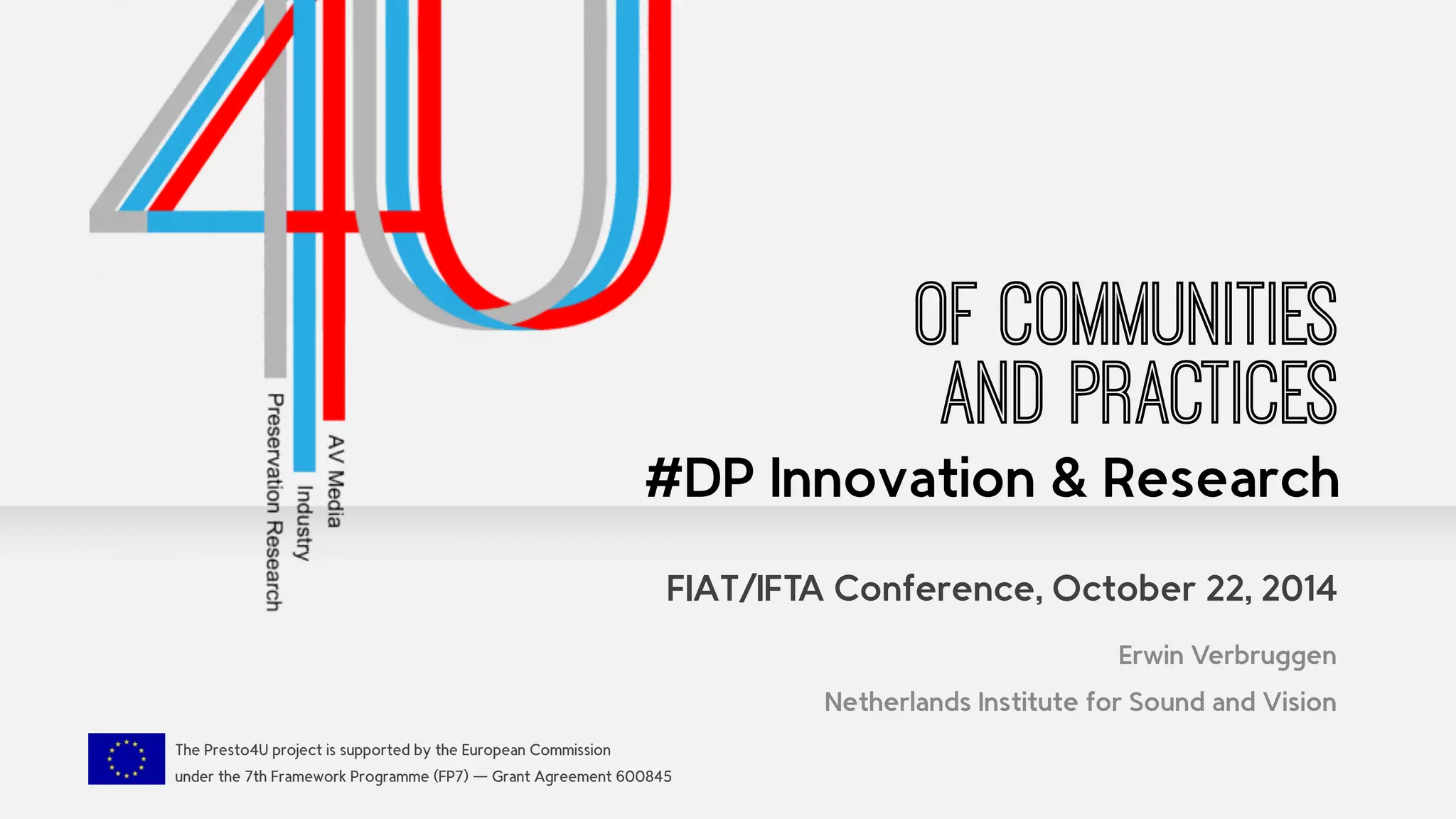The Presto4U project, funded by the European Commission under the FP7 framework, focuses on improving preservation and accessibility of audiovisual media through collaboration among various stakeholders, including public and private sectors. Key challenges identified include a lack of access facilities, standardization, and automation in managing audiovisual archives. The project aims to develop tools and strategies for better digital preservation practices while addressing the diverse needs and objectives of the audiovisual community.