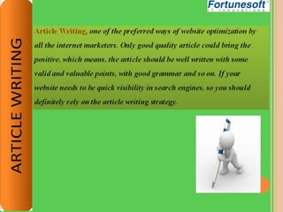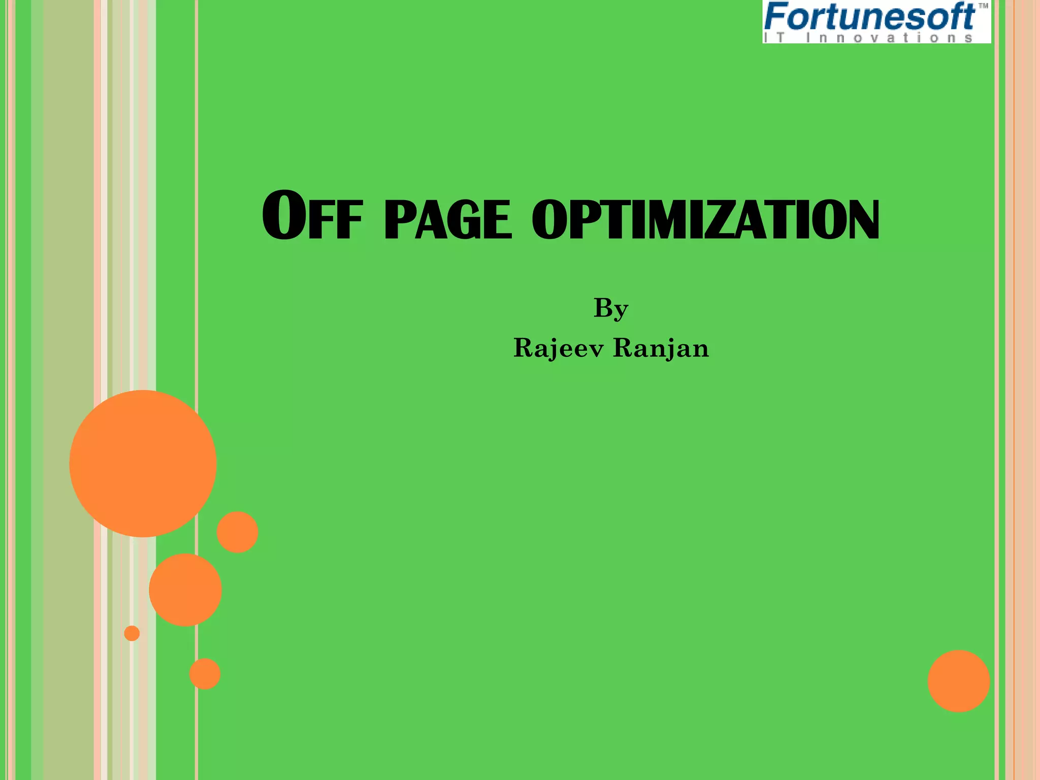 Off-page optimization is a crucial aspect of SEO that focuses on building backlinks and increasing website visibility through various techniques such as directory submission, link building, social media profiles, and content distribution. Key strategies include one-way and reciprocal link building, search engine submissions, and business listings. Effective off-page techniques enhance website performance for target keywords and attract more traffic.