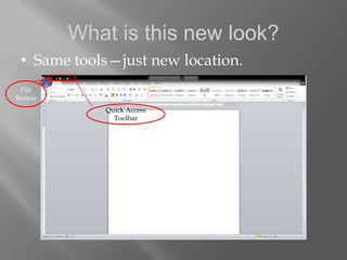 This document provides tips for optimizing Microsoft Office 2010. It discusses how to personalize the Quick Access Toolbar by adding or rearranging buttons. It also describes how to adjust the Recent Documents list by changing the number displayed or pinning frequently used documents. The document outlines how to customize the Ribbon by moving, adding, or removing tabs and groups. Finally, it explains how to change the default working folder to save files in a different location to save time. The tips are meant to help make Office 2010 work more efficiently for individual users.