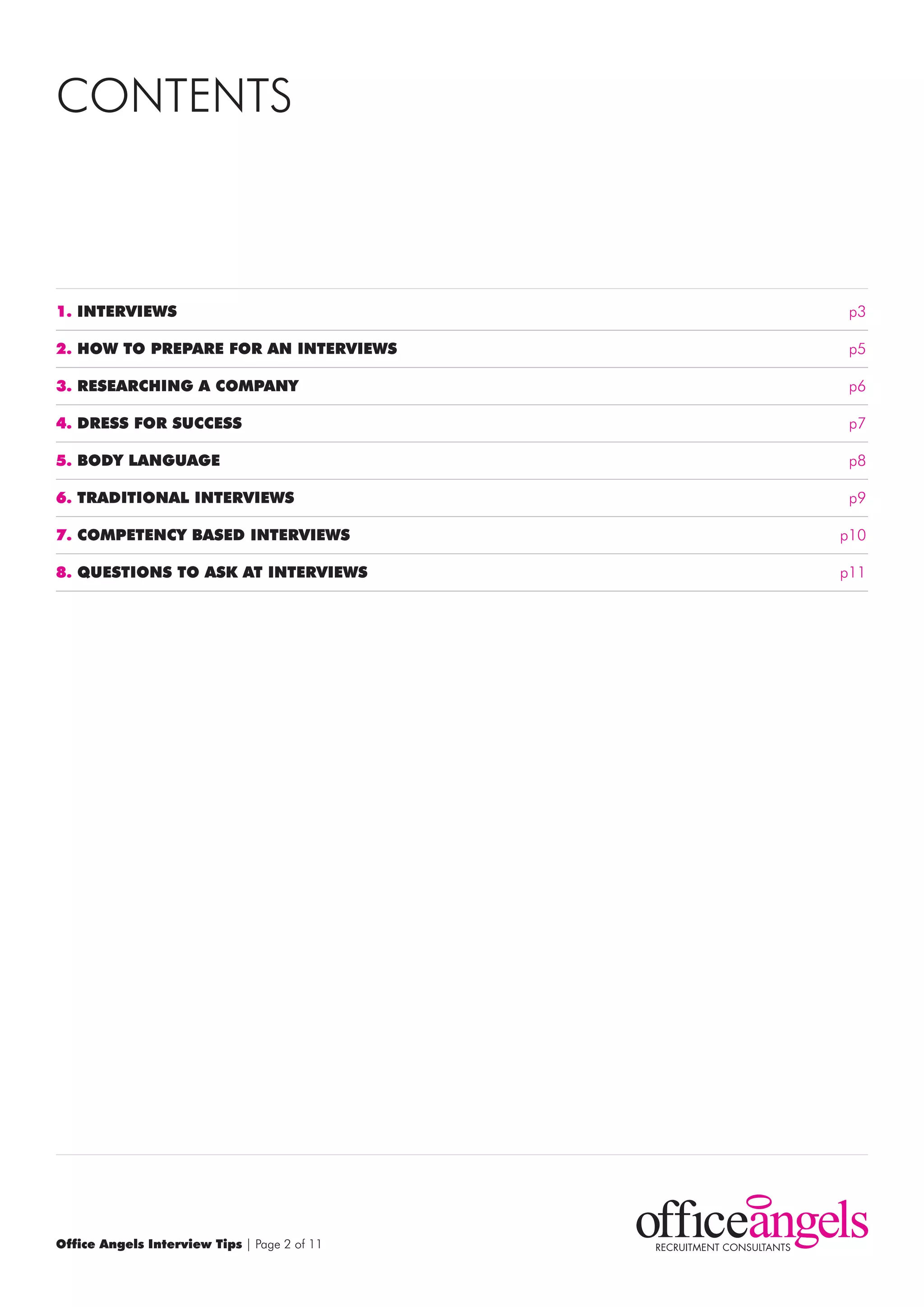 This document provides tips for preparing for and succeeding in job interviews. It discusses researching the company in advance, dressing professionally, practicing good body language like making eye contact and smiling, and preparing answers to common interview questions by anticipating what will be asked. The tips recommend sending a thank you note after the interview to reinforce interest in the role. Overall, the document emphasizes being thoroughly prepared as the key to interview success.