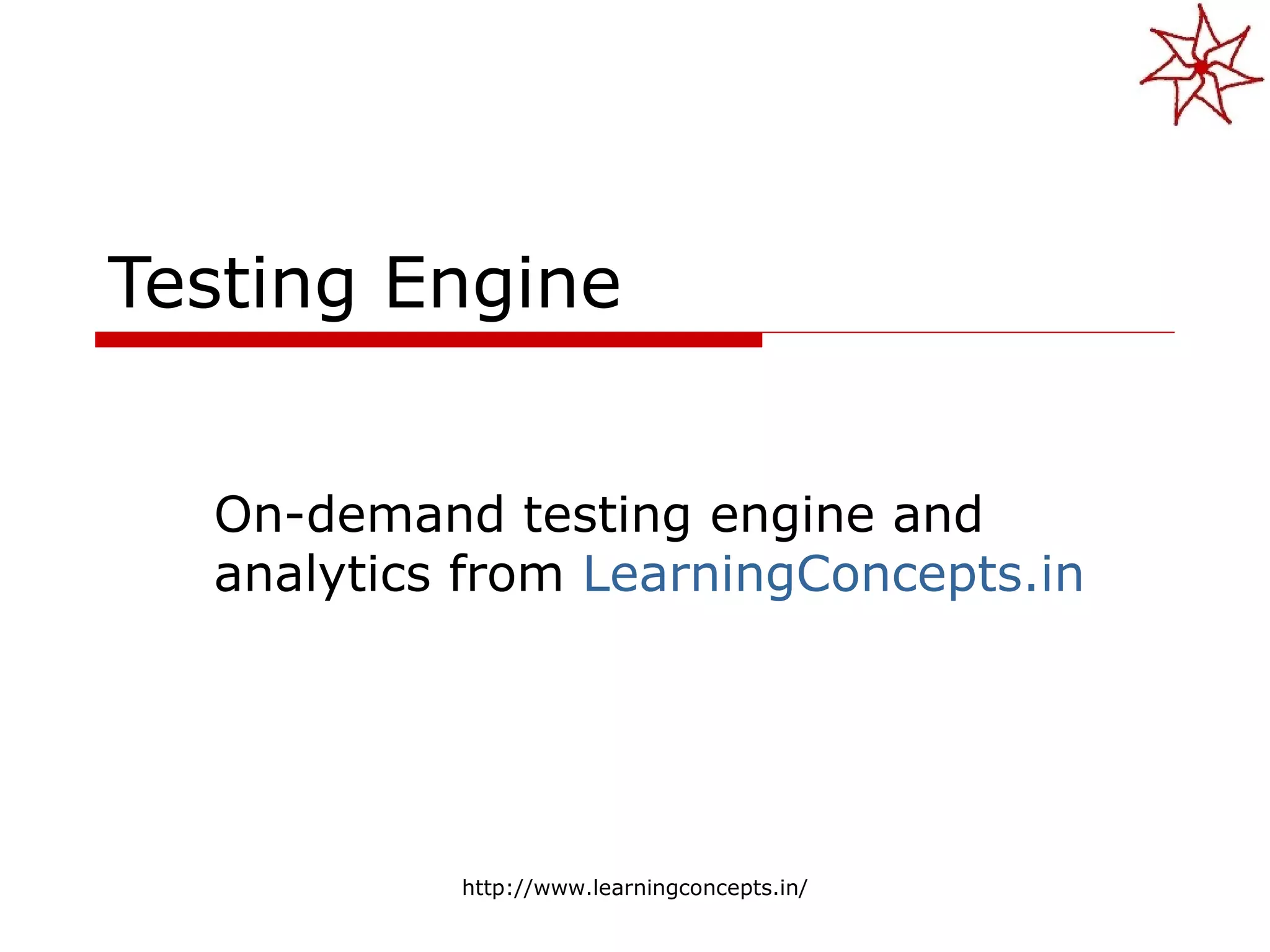 LearningConcepts provides an offline testing engine software that allows students to take practice tests on their personal computers. The software can be used to import numerous tests and is secure to prevent copying of questions. Coaching institutes can distribute the software to students so they can conveniently practice long tests from home. Institutes can also earn revenue by selling additional tests that are compatible with the branded testing engine software.