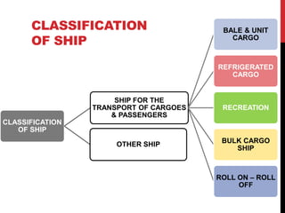 The document classifies various types of ships used for transporting cargo and passengers, including specialized vessels for offshore oil and gas exploration. It details the functions of different offshore vessels such as seismic survey ships, drilling rigs, and floating production storage and offloading vessels, as well as naval ships and their missions. The need for advanced technologies in deep-water exploration and production due to depleting resources is also highlighted.