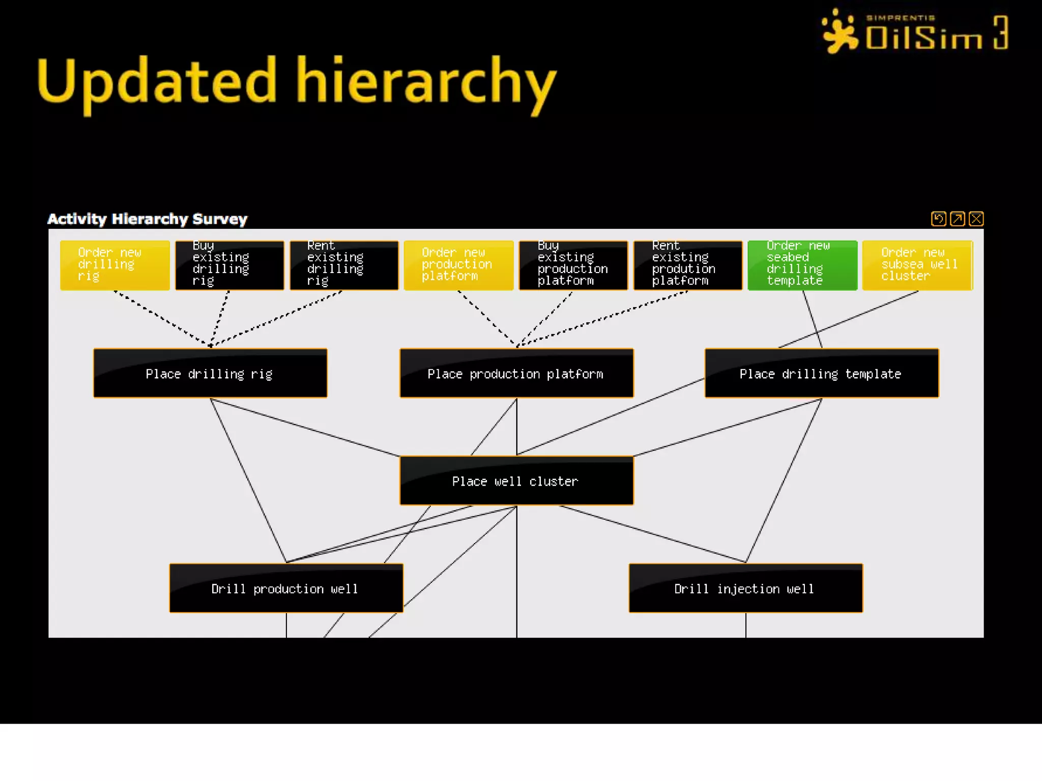 This document provides an overview of OilSim, a simulation for the oil and gas upstream value chain. It describes the learning objectives, challenges, and tasks involved in exploring for and developing oil and gas resources. The tasks include identifying sedimentary basins from surveys, bidding on exploration licenses, acquiring seismic data, drilling exploration and appraisal wells to evaluate discoveries, and developing field production plans to maximize resource recovery. The goal is to make economically viable decisions that consider costs, risks, environmental factors, and partnerships with other teams.