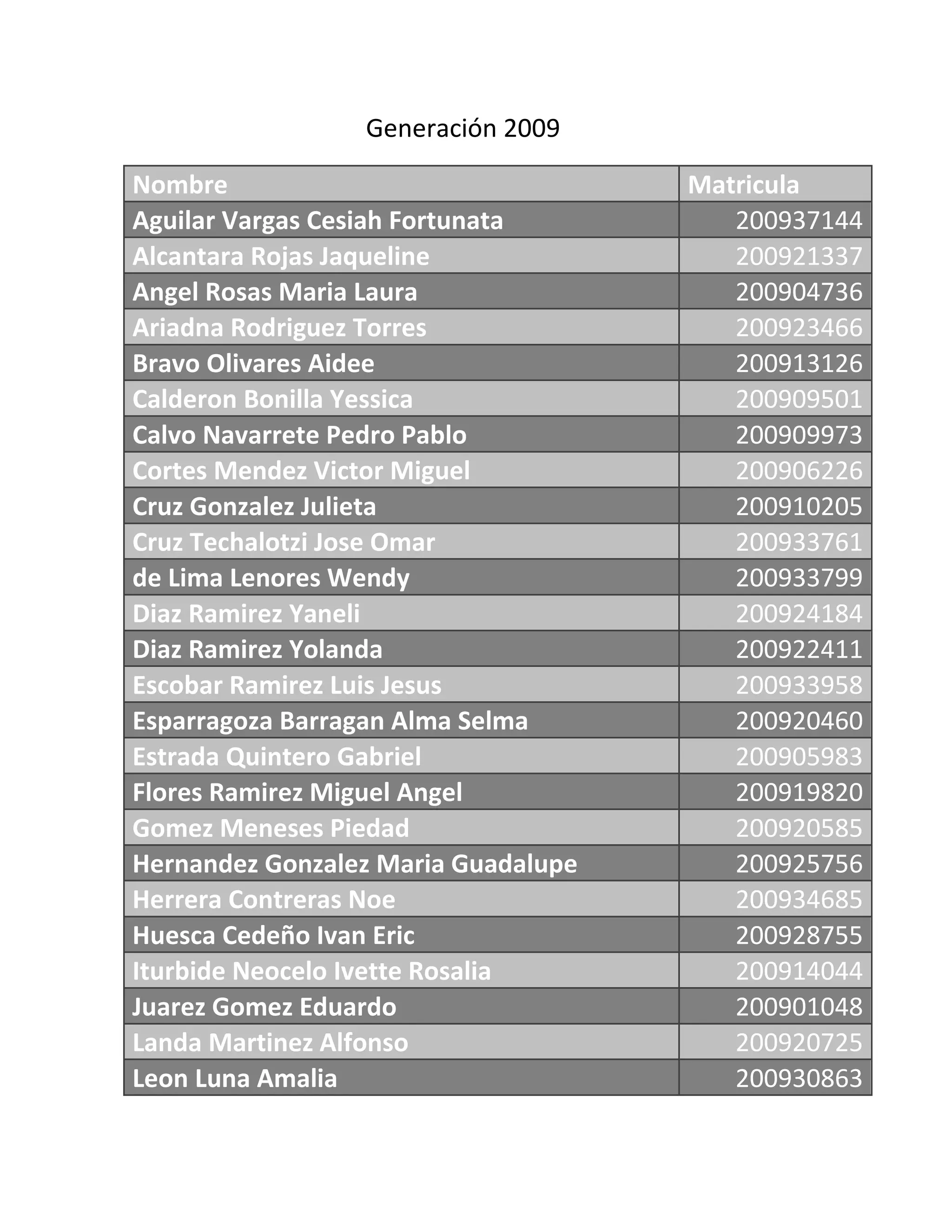 This document contains a list of names, student IDs, and generation for 49 students from Generation 2009. It includes their names, student IDs, and Generation 2009. The list contains basic student information and identifies each student as part of Generation 2009.
