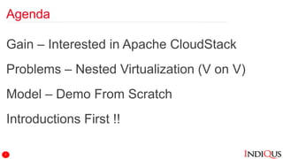 This document outlines steps to build a cloud in 4 hours using Apache CloudStack and Citrix XenServer. It discusses installing Oracle VirtualBox, Citrix XenServer, CentOS, CloudStack, and configuring MySQL, NFS, firewall rules. Key steps include downloading templates, seeding the SystemVM template, configuring zones/pods/clusters/hosts, and creating VMs to test the cloud infrastructure. Resources for further exploration are provided.