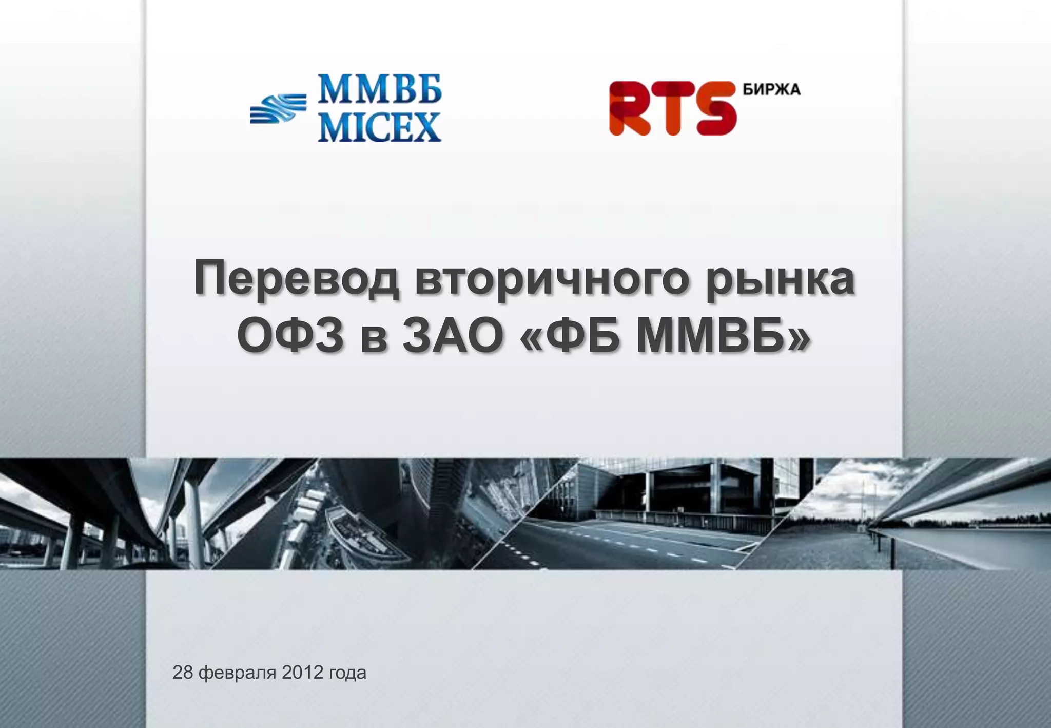 Документ описывает перевод вторичного рынка российских государственных облигаций (ОФЗ) в ЗАО 'ФБ ММВБ' с указанием целей проекта, таких как создание ликвидного биржевого рынка и сокращение издержек участников. Он включает информацию о прогнозах заимствований и погашений, а также о новых тарифах и режимах торговли. В заключение подводится итог о расширении круга участников торгов и включении ОФЗ в котировальный список.