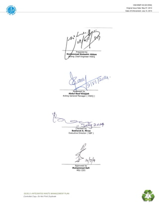 The document outlines OGDC's integrated waste management plan, which focuses on effective waste handling and disposal to protect health and the environment while meeting legal requirements. It details the company's responsibilities, the types of wastes managed, and the methods for their disposal, ensuring compliance with local regulations. The plan emphasizes the importance of behavioral change among employees and the community to foster responsible waste management practices.