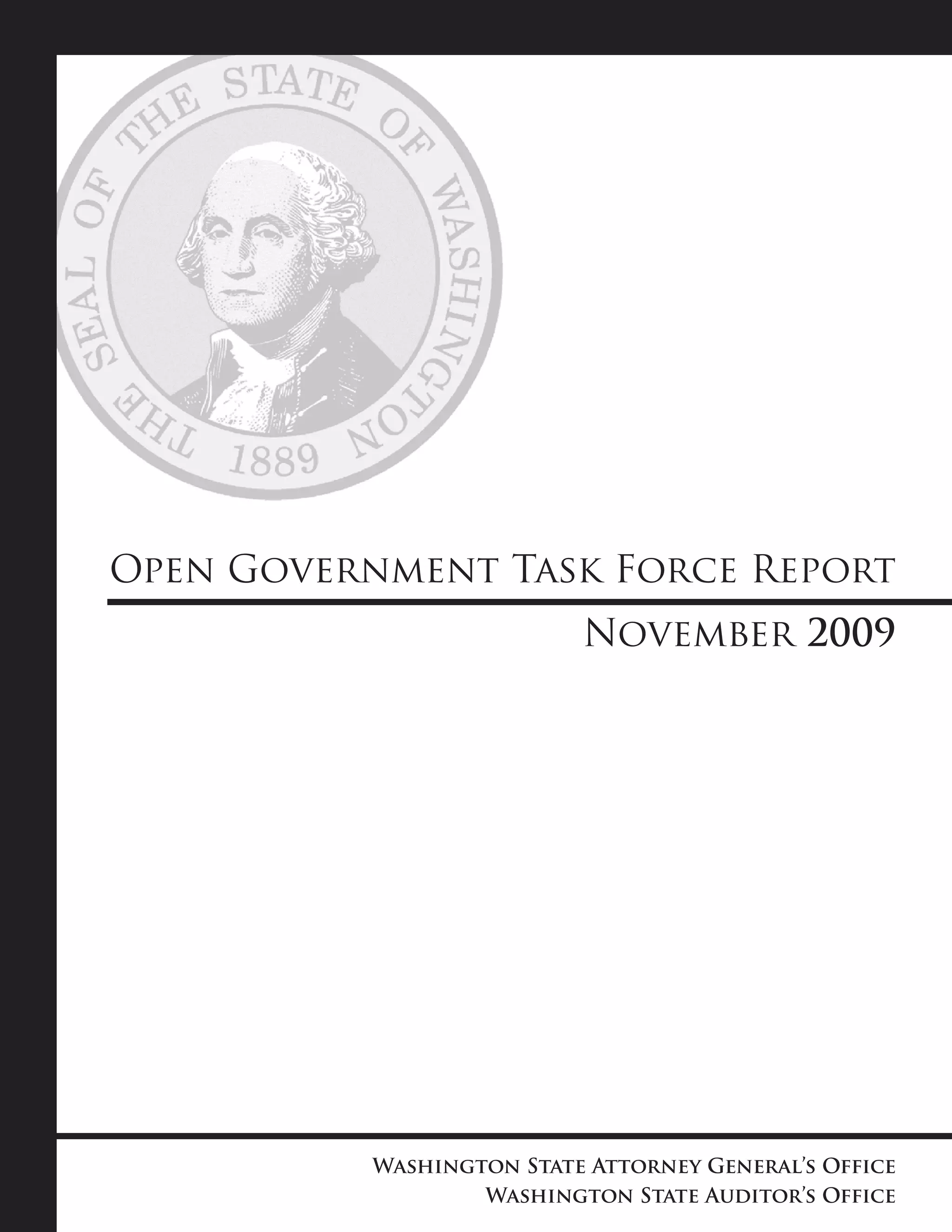 This document summarizes the proceedings of the Open Government Task Force, which was convened to study and make recommendations about creating an administrative board to rule on complaints regarding Washington state's Public Records Act and Open Public Meetings Act. The task force heard a presentation from the director of Pennsylvania's Office of Open Records, which resolves records complaints administratively. Overall, the task force supported creating an optional administrative process to resolve disputes as an alternative to litigation, with incentives to encourage its use.