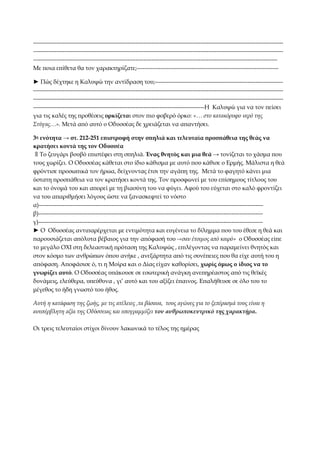 ---------------------------------------------------------------------------------------------------------------------------------------------------------------------------------------------------------------------------------------------------------------------------------------------------------------------------------------------------------------------------------------Με ποια επίθεταθα τον χαρακτηρίζατε;-----------------------------------------------------------------------► Πώς δέχτηκε η Καλυψώ την αντίδραση του;-------------------------------------------------------------------------------------------------------------------------------------------------------------------------------------------------------------------------------------------------------------------------------------------------------------------------------------------------------------------------------------------------------------------Η Καλυψώ για να τον πείσει