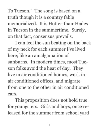 This document provides a first-person account of the author's experience playing catcher for the Tucson Federal Savings little league baseball team in the summer of 1962. Some key details: