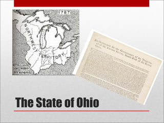 The document provides a history of the state of Ohio and the city of Massillon. It describes how the early inhabitants settled in Ohio for its good land near the Ohio River. People like Thomas and Charity Rotch established the early settlement of Kendal, which later became Massillon. Massillon grew as a center for industry and had a significant military presence during wars. The development of canals and steam engines further advanced Massillon's economy.